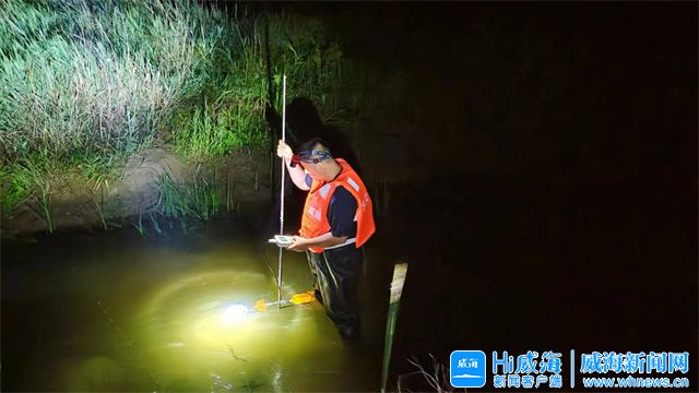 ????????6月13日凌晨,受上游普遍降雨影響,沽河發生一次明顯漲水過程。榮成水文測流隊員們聞“汛”而動,頂風冒雨奔赴沽河楊莊站,爭分奪秒開展河道流量測驗作業。