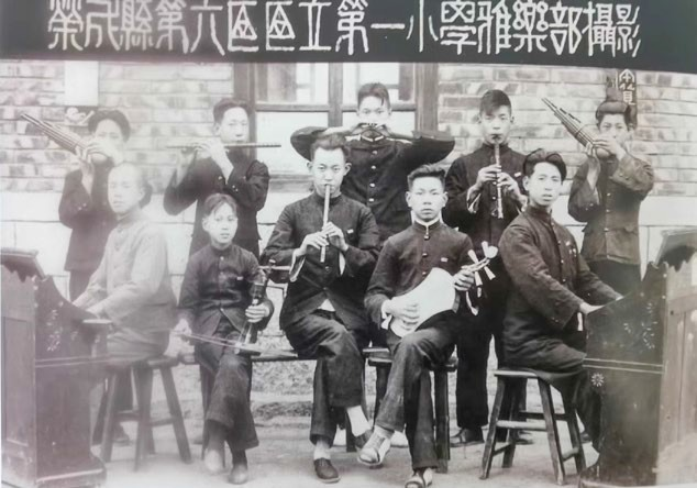 1926年,榮成縣第六區(qū)第一小學(xué)雅樂部合影(前排右二為王一平)