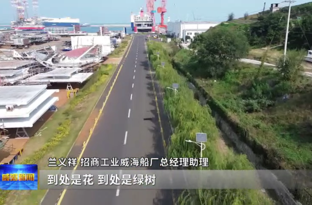 蘭義祥說,他們整個廠區是打造花園工廠,到處是花,到處是綠樹,海邊還有海邊公園的文化長廊,還有智慧工廠,四周也是打造綠色文化圈,“十四五”期間整個廠區綠化能達到7到8萬平方以上,還有一塊是清潔能源,再看那是屋頂光伏,下面是太陽能路燈,現在他們在環保方面的投入已經轉化成公司的軟實力了,甚至是招商工業威海船廠品牌影響力都有大的提升。