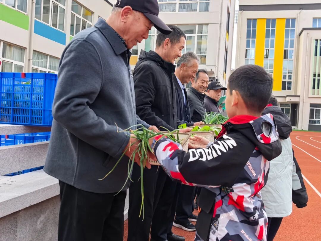 ????????升旗儀式上,孩子們抬著豐收籃走過主席臺,翠綠蔬菜引得全校掌聲。他們捧著最鮮嫩的蔬菜,向爺爺們道聲 “謝謝您”。