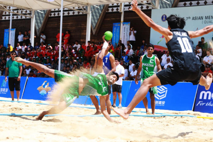 ????????南海新區國際沙灘運動基地坐落于海景路東首,北靠萬畝松林,南接蒼茫大海,建筑面積1440平方米,可容納觀眾5000人,兩排造型別致的充滿現代感的功能房內,器材室、洗手間、淋浴室、會議室等配套齊全。南海新區國際沙灘手球訓練基地是全國首個國家沙灘手球訓練基地,舉辦了亞洲沙灘手球錦標賽、全國沙灘手球錦標賽,為大賽成功舉辦提供優質的場地、器材、接待等服務,獲得了各地參賽隊伍的廣泛認可。