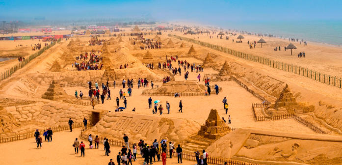 ????????從2008年舉辦第一屆以來,威海沙雕文化藝術節每年都緊扣時代脈搏、彰顯時代風采,對金色沙子賦予文化內涵,確定不同文化主題,眾邀國內外專業沙雕大師,融合世界文化元素,聚沙成塔、積沙成畫,呈現世界文化藝術大觀。通過精雕細琢,沙雕節已成為南海新區萬米金灘上的一塊“金色”招牌,成功申報了世界上海岸線最長的沙雕群、世界上最大的沙雕城堡樂園等6項世界吉尼斯世界紀錄,并先后獲得“最具活力節慶活動”、威海市十大文化產業品牌等榮譽稱號。