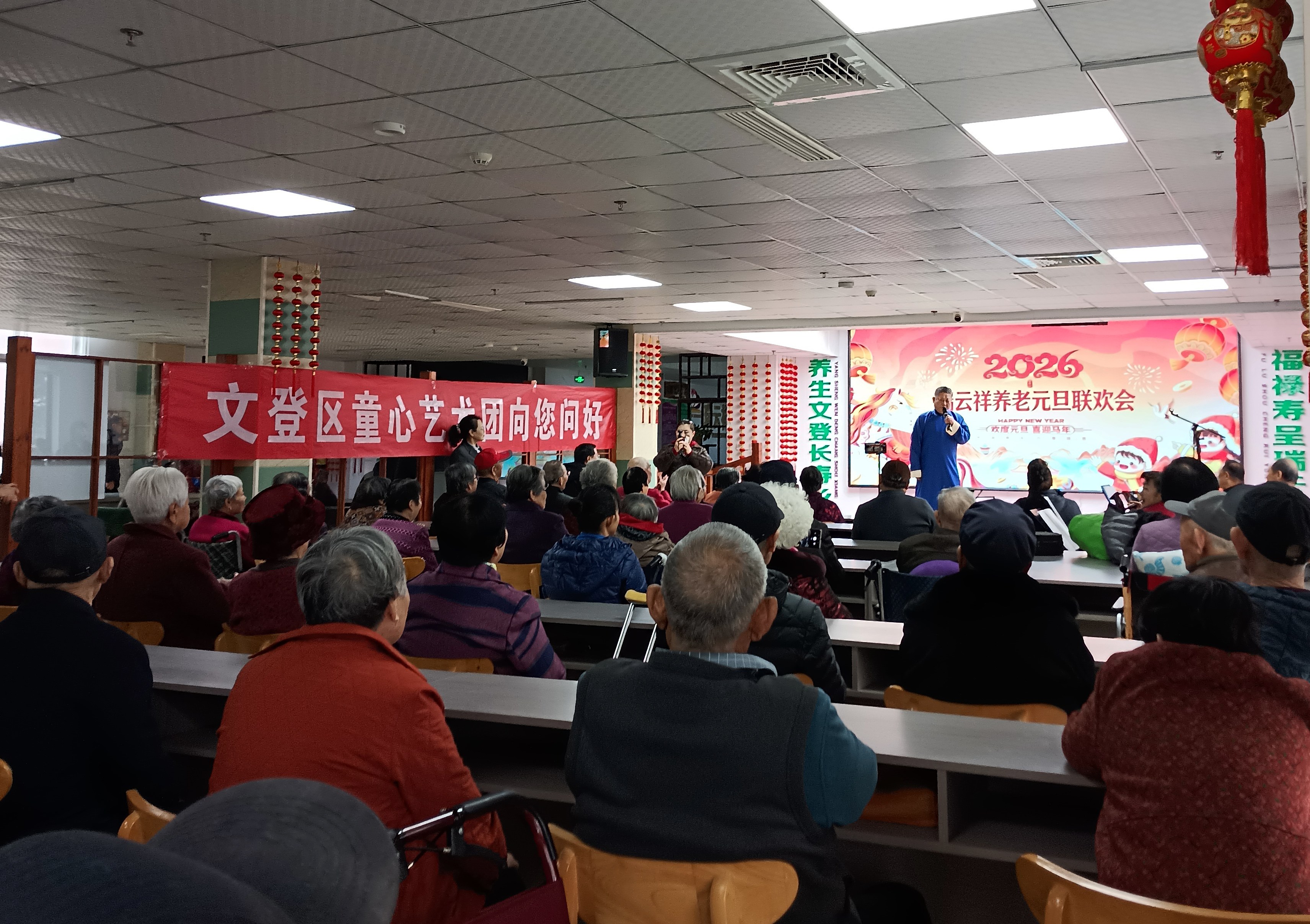 2025年12月31日上午,威海市瑞云祥醫養照護中心暖意融融,“瑞云祥養老元旦聯歡會”溫情啟幕。文登區童心藝術團走進這里,以一場精彩紛呈的文藝演出,為老人們送上別樣歡樂與濃濃的節日祝福。