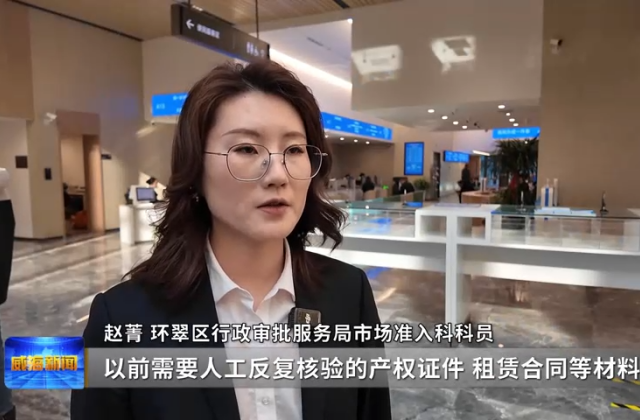 ????????環翠區行政審批服務局市場準入科科員趙菁表示,以前需要人工反復核驗的產權證件、租賃合同等材料,現在系統自動匹配核驗標準地址,通過全程電子化辦理,免于提交產權證明即可辦理,審批效率提升50%以上。