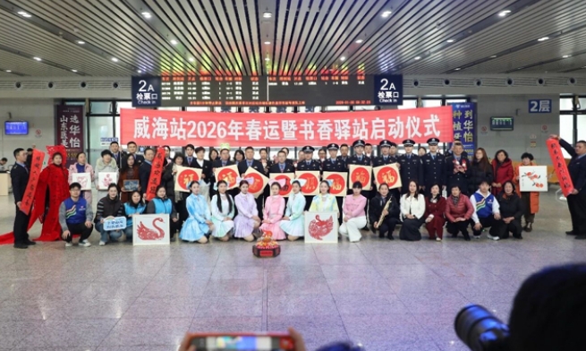????????春運(yùn)到來之際,威海站還聯(lián)合我市文旅部門舉行春運(yùn)啟動(dòng)儀式,邀請(qǐng)書法家為旅客朋友們寫福字、送春聯(lián)、畫國畫,進(jìn)行威海面塑、剪紙、玻璃畫等非遺項(xiàng)目展示,為游客表演快閃舞蹈、國粹京劇,并將火炬八街等網(wǎng)紅打卡地“地標(biāo)”搬進(jìn)車站,讓各地旅客充分感受威海人的熱情和威海文旅的精彩。
