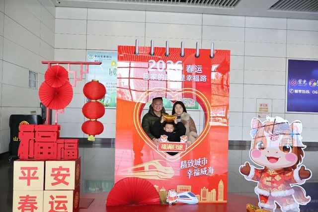 ????????此外,在威海站售票處及出站口等區域,威海交通場站管理有限公司還設置了打卡墻,并安排志愿服務人員提供道路引導等志愿服務,營造出濃濃的節日氣氛。