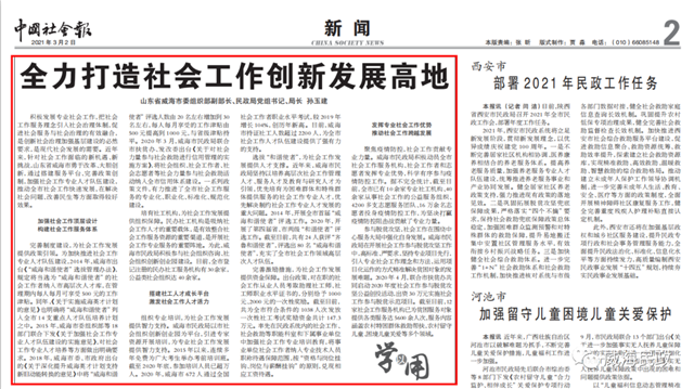 市委組織部副部長(zhǎng)、市民政局黨組書記、局長(zhǎng)孫玉建在《中國(guó)社會(huì)報(bào)》發(fā)表署名文章《全力打造社會(huì)工 ...