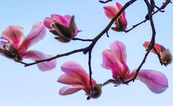 紫玉蘭花粉黛濃,年年歲歲斗風開