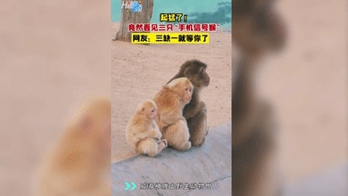Hi視頻 | 可愛!威海一動(dòng)物園三只猴子排排坐神似手機(jī)信號(hào)