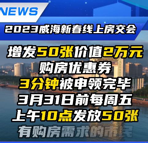 視頻丨3分鐘申領一空!威海增發50張價值2萬元購房優惠券