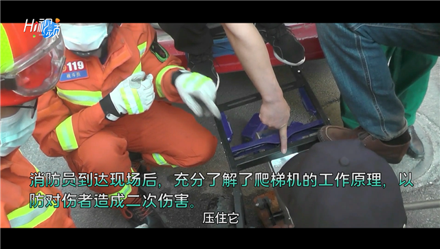 Hi視頻丨男子被爬梯機夾住手指 消防緊急救助