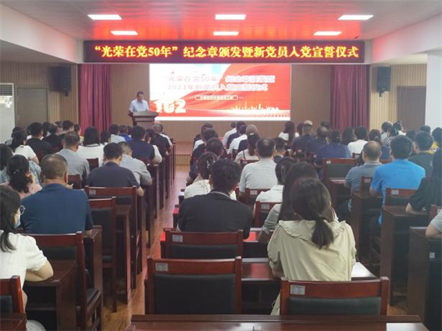 文登經濟開發區舉行“光榮在黨50年”紀念章頒發暨新黨員入黨宣誓儀式
